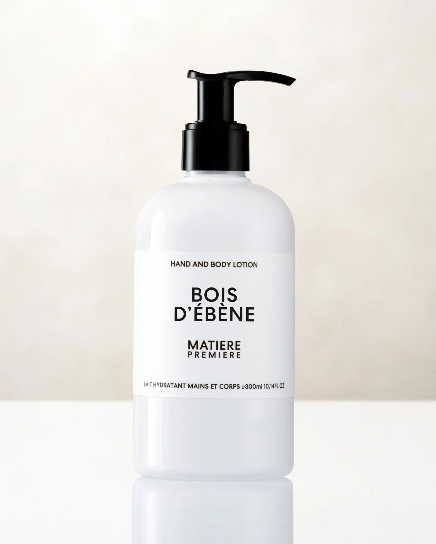 Easily absorbed, this hand and body lotion leaves the skin satin soft and scented with the dark woody notes of Bois d’Ebène.
